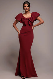 Elegant Square Neck Bow-Detailed Ruffled Sleeve Mermaid Floor-Length Evening Dress - US 2 / UK 6 / EU 32