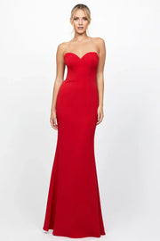 This vibrant red dress features a sleek mermaid silhouette, strapless sweetheart neckline, and a lace-up back design that adds elegance. Crafted from smooth fabric, the maxi length creates a polished, eye-catching look—ideal for evening events, galas, or upscale gatherings, balancing glamour with sophisticated charm.