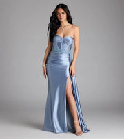 Elegant Light Blue Sleeveless Strapless Lace-Detailed Slit Satin Mermaid Floor-Length Evening Dress - US 2 / UK 6 / EU 32