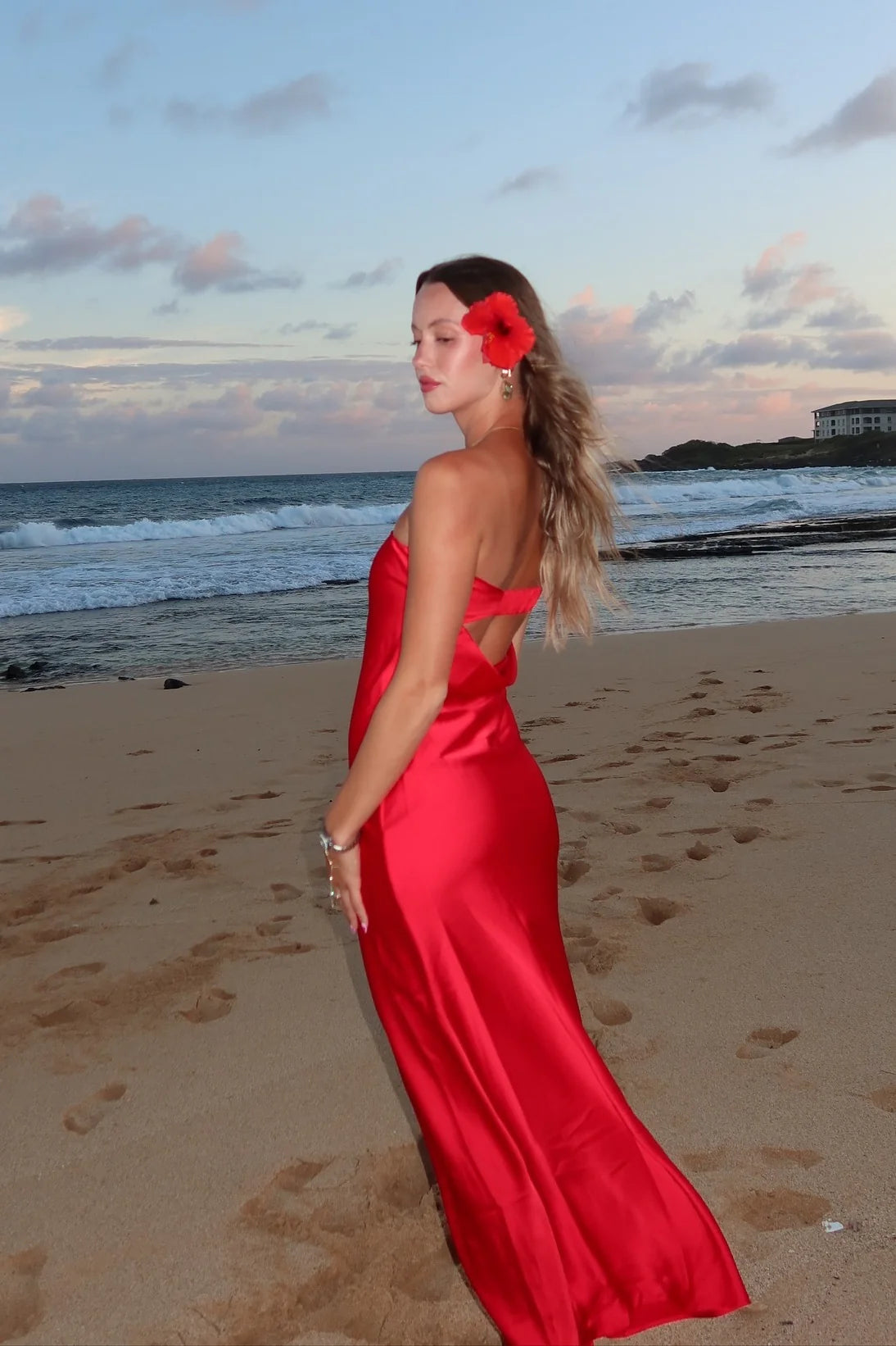 Luxe Satin Strapless Cutout Back Maxi prom dress Occasion: Ideal for Wedding , formal dinners, or any stylish party.