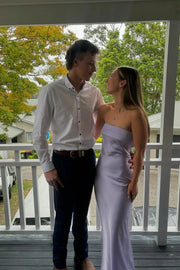 Luxe Satin Strapless Cutout Back Maxi Prom Dress with Body-Skimming Fit - Lavender / US 2 / UK 6 / EU 32