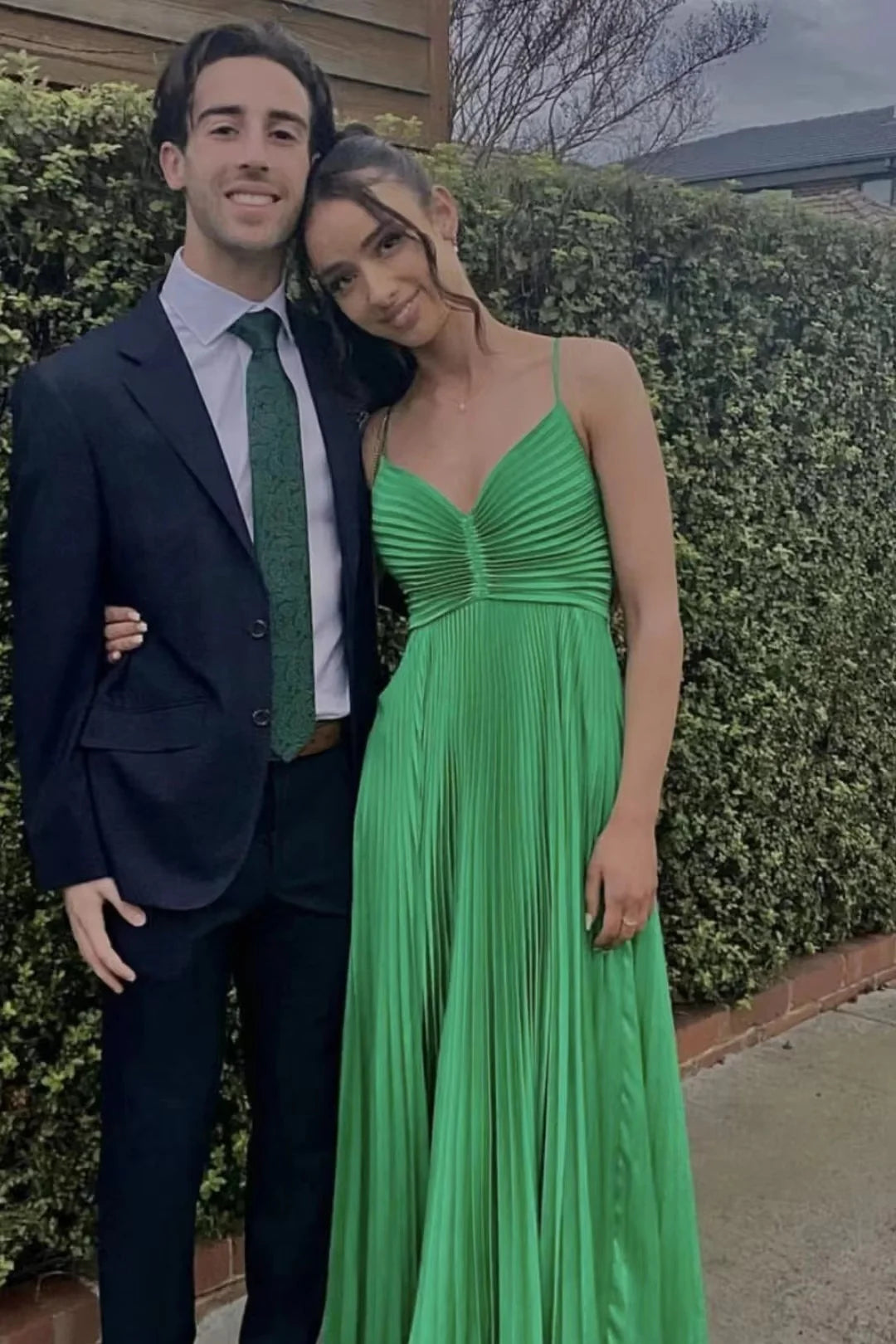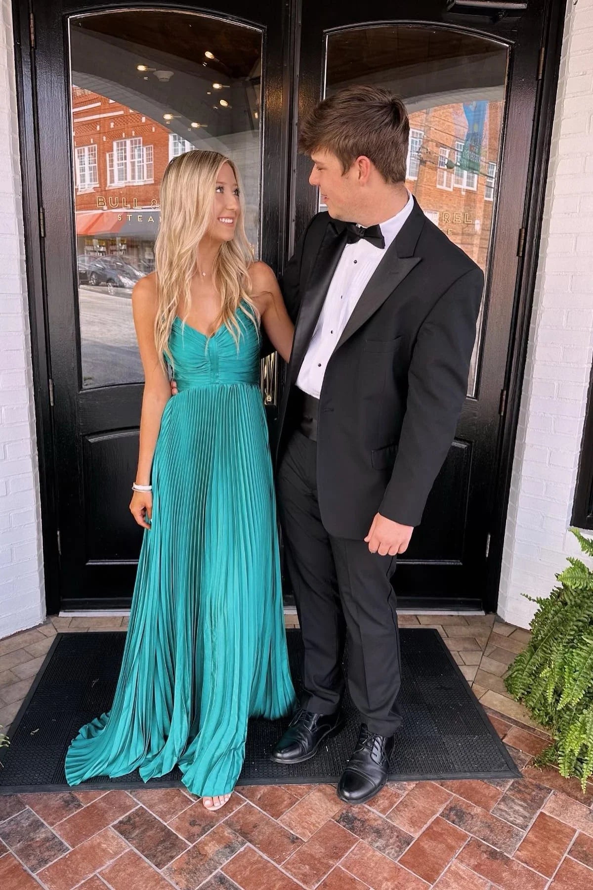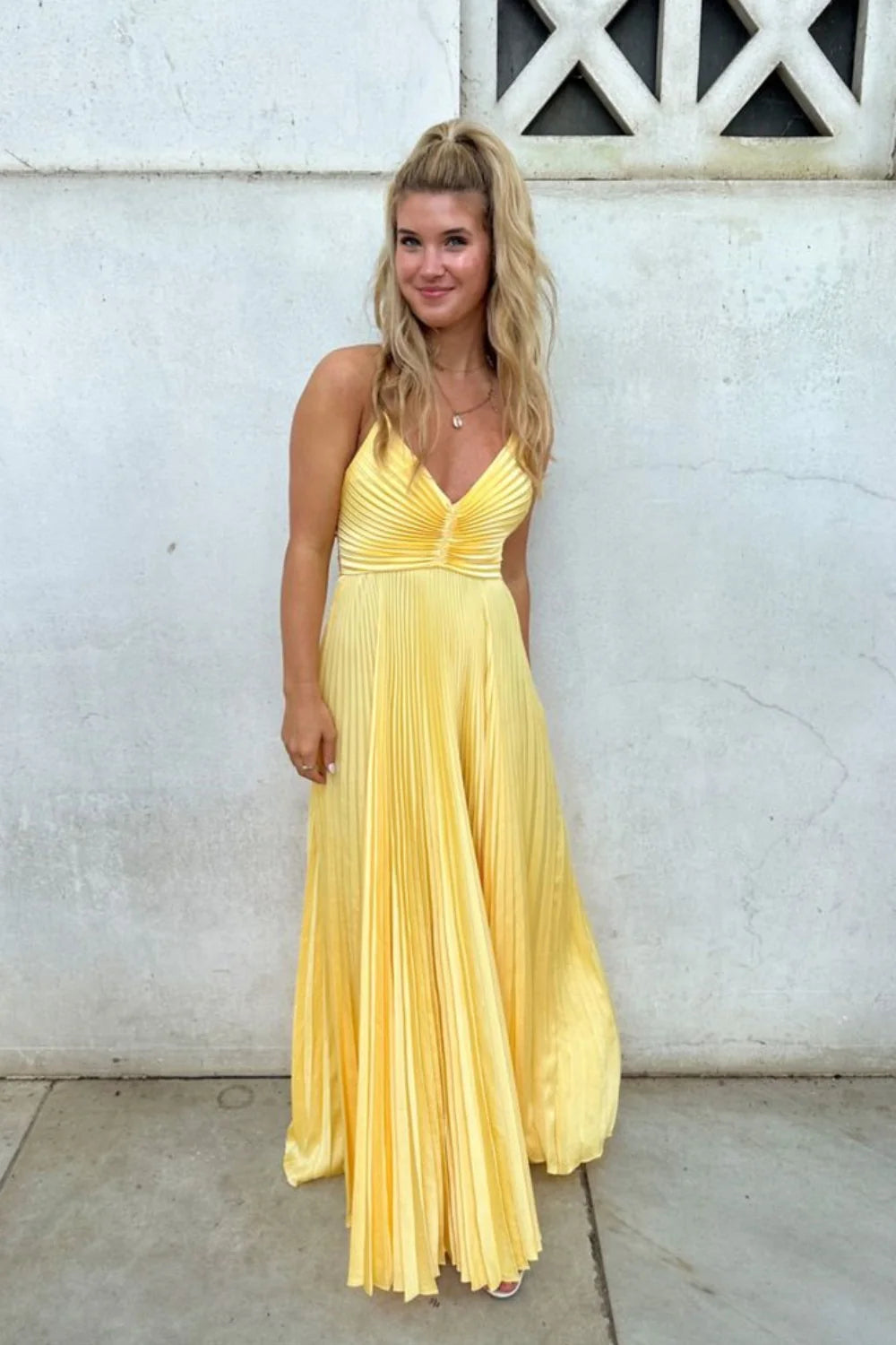 Pleated Satin Prom Dress with V-Neck, Crisscross Back, Bow Detail & A-Line Silhouette - Yellow / US 2 / UK 6 / EU 32
