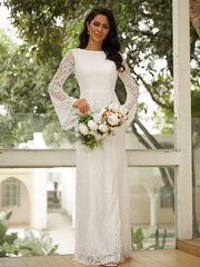 Vestidos de novia con corte tubo/columna, encaje, mangas largas y escote redondo hasta el suelo - EE. UU. 2 / Reino Unido 6 / UE 32
