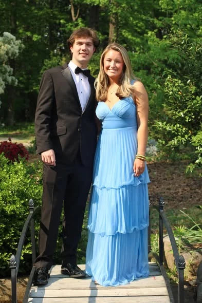 Step into prom night like a vision in this sky blue chiffon prom dress, designed for ethereal elegance. It features a ruched sweetheart neckline, delicate wide shoulder straps, and a flowy A-line silhouette crafted with multiple layers of tiered, pleated ruffles for stunning movement. The low open back adds a touch of romance, making it perfect for garden proms, outdoor galas, and photo-ready moments all night long.