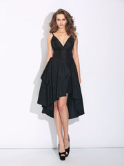 Vestidos de tafetán de corte A/princesa con tirantes finos, volantes, sin mangas y corte alto bajo - EE. UU. 2 / Reino Unido 6 / UE 32