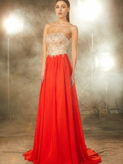 Vestidos de gasa con corte A/princesa, sin tirantes, con cuentas y cola larga - EE. UU. 2 / Reino Unido 6 / UE 32
