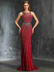 Vestidos de corte tubo/columna con escote redondo, abalorios, sin mangas, de red y cola larga - EE. UU. 2 / Reino Unido 6 / UE 32