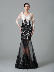 Vestidos largos de red con mangas 3/4 y encaje, escote en V y corte tubo/columna - EE. UU. 2 / Reino Unido 6 / UE 32