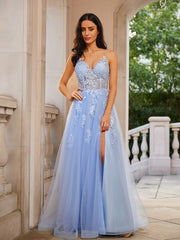 Vestidos de corte A/princesa con apliques de tul, escote en V, sin mangas y hasta el suelo - EE. UU. 2 / Reino Unido 6 / UE 32