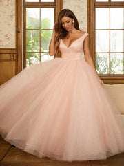 Vestidos de fiesta de tul con volantes, escote en V, sin mangas y hasta el suelo