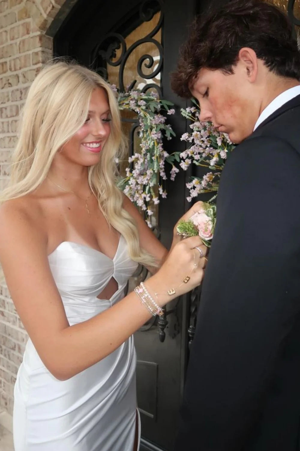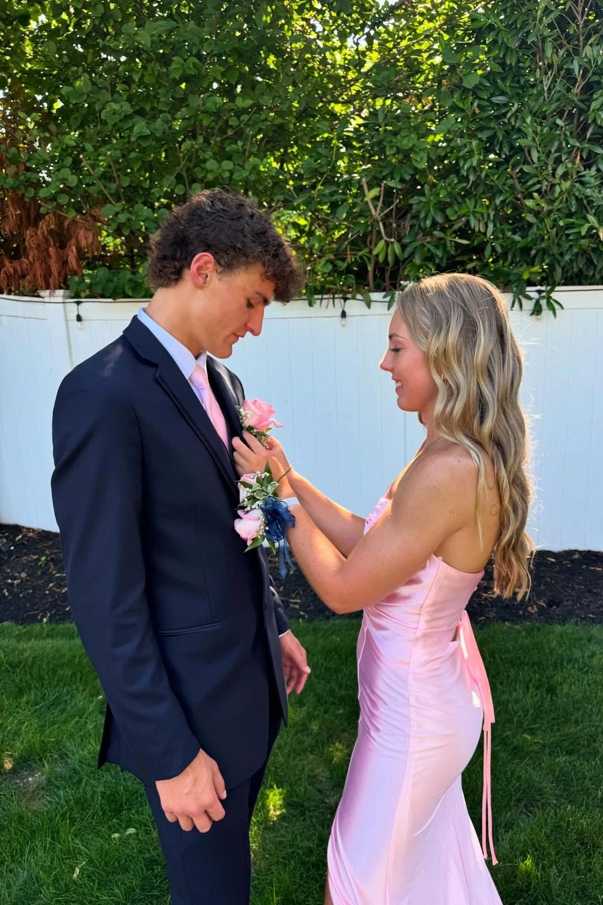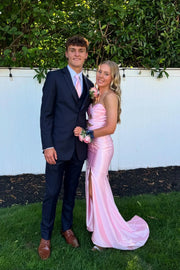 Satin Strapless Sweetheart Cutout Bodice Ruched High-Slit Mermaid Train Prom Dress - Pink / US 2 / UK 6 / EU 32