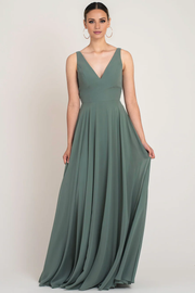 Vestido de noche Jimiss con escote en V, hombros descubiertos, sin mangas, espalda descubierta con cremallera y largo hasta el suelo - EE. UU. 2 / Reino Unido 6 / UE 32