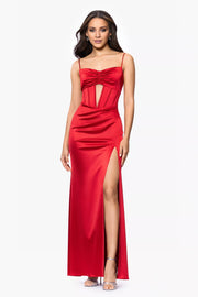 Vestido de fiesta sin mangas con escote en forma de corazón, tirantes finos, abertura lateral y largo hasta el suelo