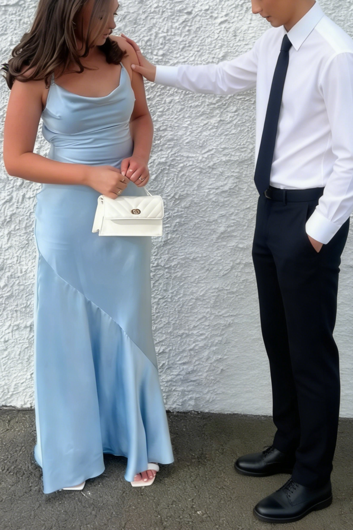 Cowl Neck Satin Maxi Prom Dress Occasion: Ideal for Wedding , formal dinners, or any stylish party.