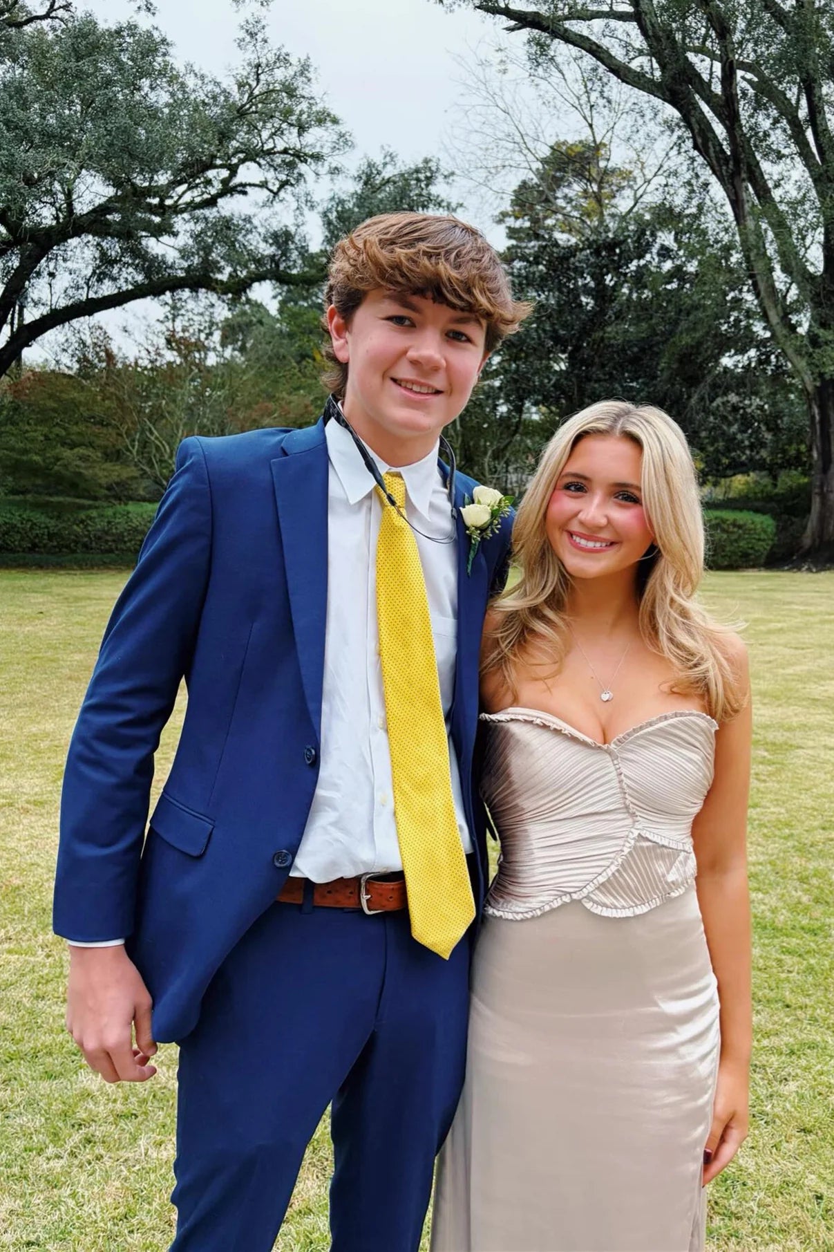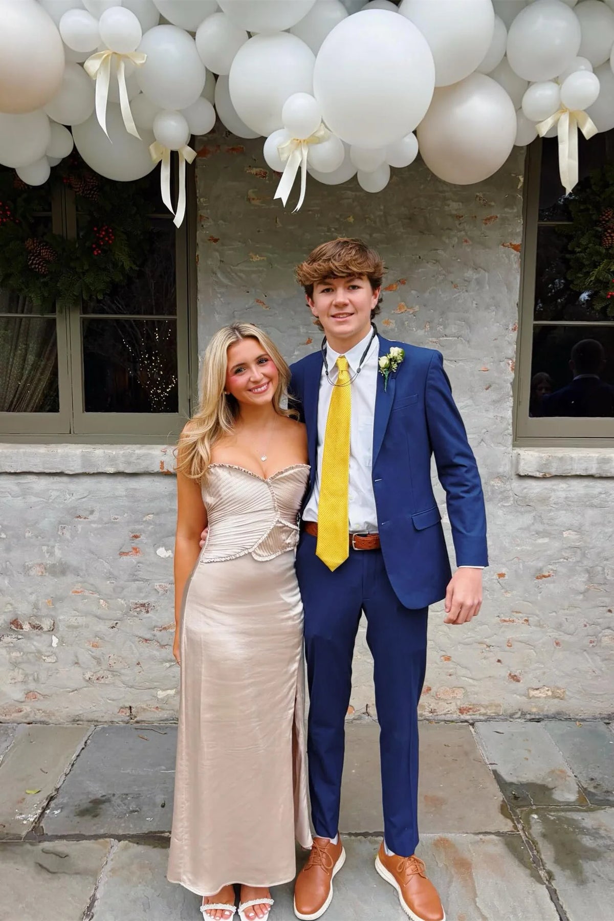 Elegant Strapless Prom Dresses with Ruched Bodice, Ruffle Trim, Side Slit and Flowing Satin Maxi Silhouette Formal Gown - US 2 / UK 6 / EU 32