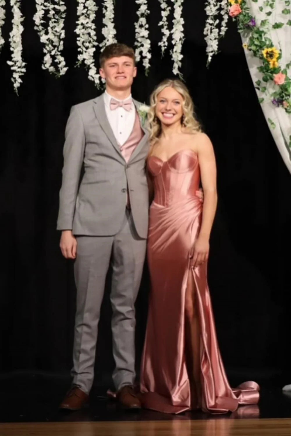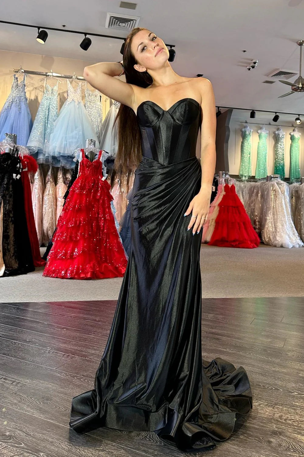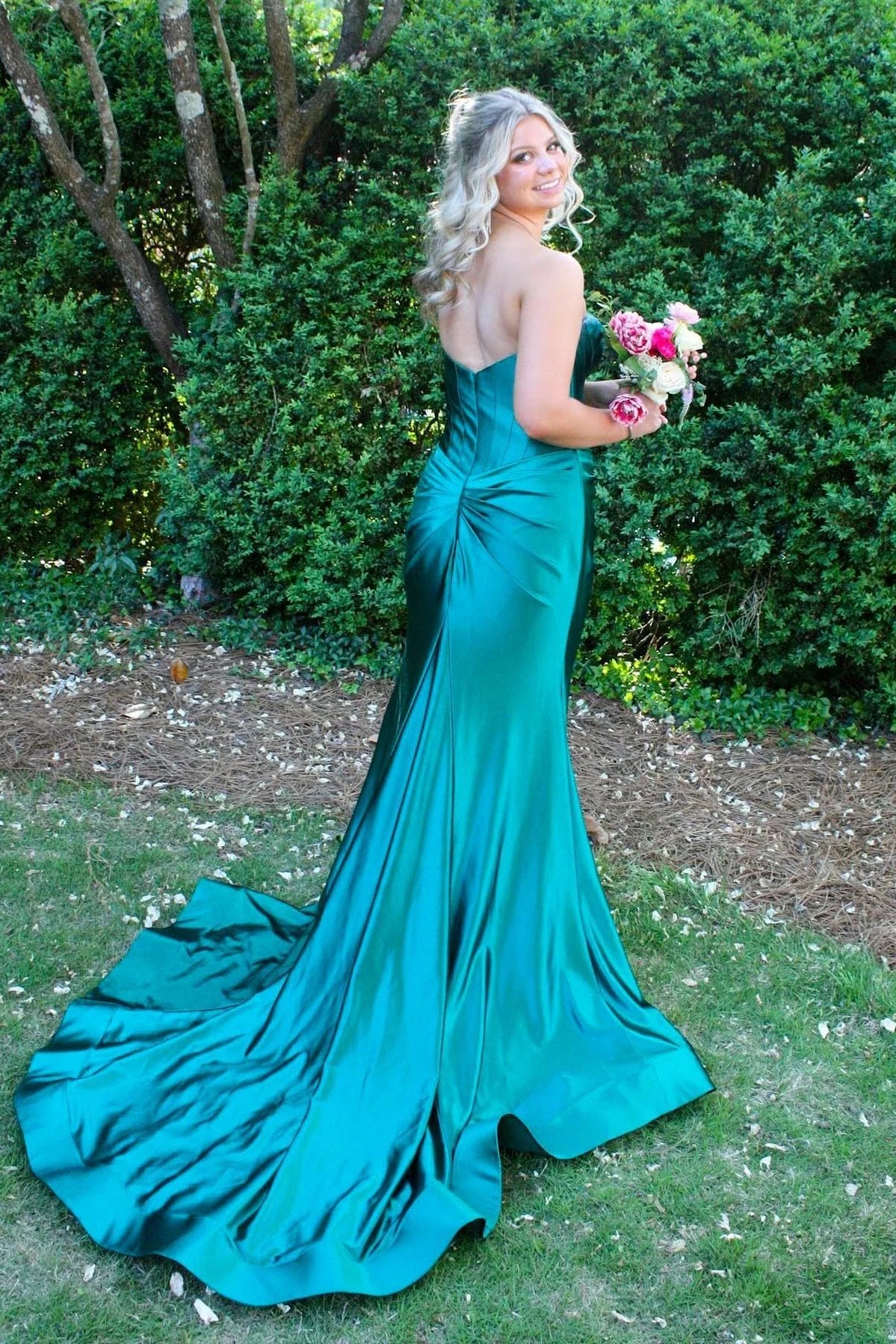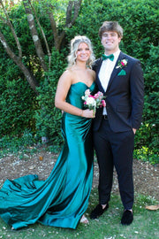 Glamorous Strapless Sweetheart Neck Satin Mermaid Prom Dress with Corset Bodice & High Side Slit - Green / US 2 / UK 6 / EU 32