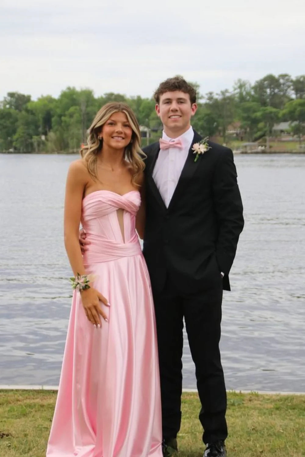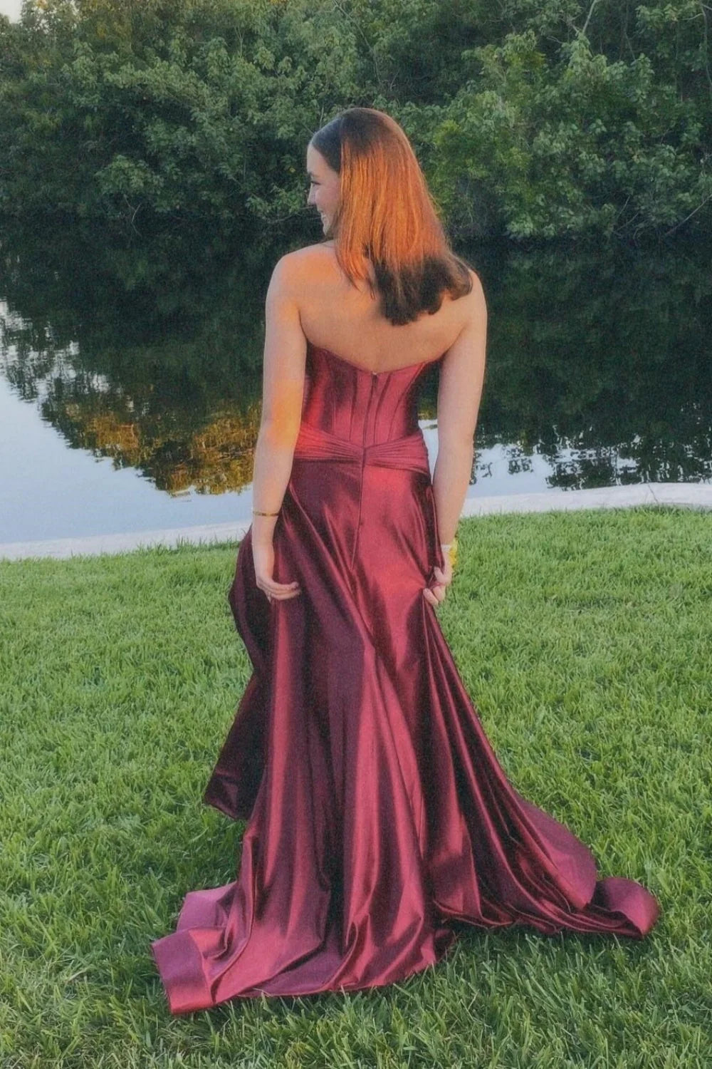 Satin Strapless Sweetheart Cutout Bodice Ruched High-Slit A-Line Train Prom Dress - Royal Blue / US 2 / UK 6 / EU 32