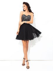 Vestidos de cóctel cortos de gasa sin mangas con escote corazón y lentejuelas, corte A/princesa - EE. UU. 2 / Reino Unido 6 / UE 32