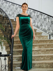 Vestidos para madre de la novia de terciopelo, con escote en V fruncido, sin mangas y hasta el suelo - EE. UU. 2 / Reino Unido 6 / UE 32