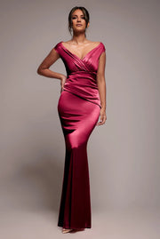 Fashion Deep V-Neck Sleeveless Ruched Satin Back Zip Mermaid Floor-Length Evening Dress - US 2 / UK 6 / EU 32