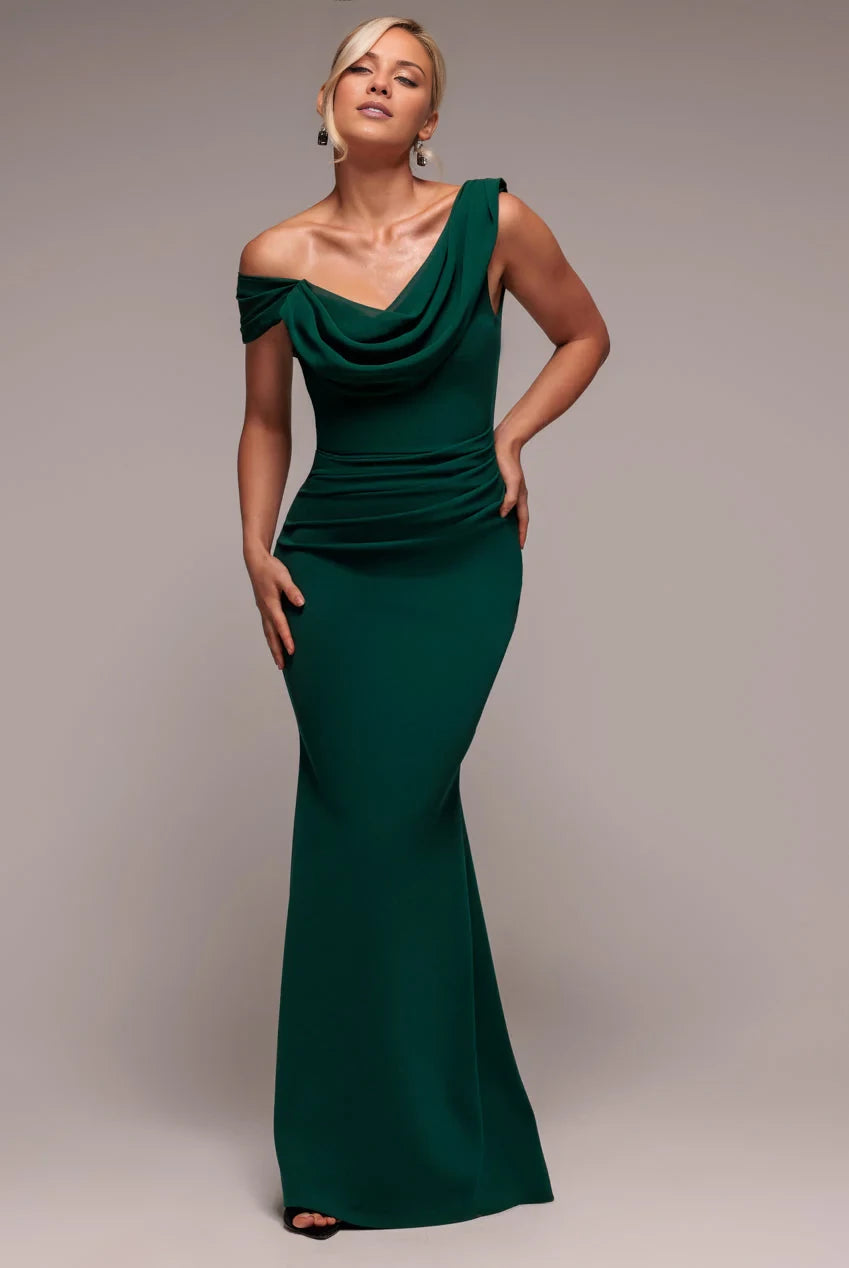 Fashion One-Shoulder Neck Draped Ruched Backless Mermaid Floor-Length Evening Dress - US 2 / UK 6 / EU 32