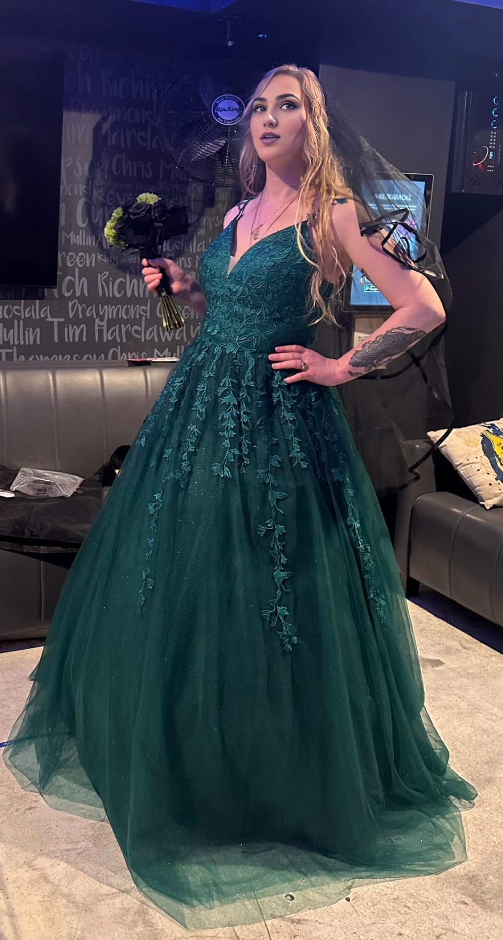 Abito da ballo Jimiss lungo fino al pavimento, senza maniche, con scollo a V e plissettato