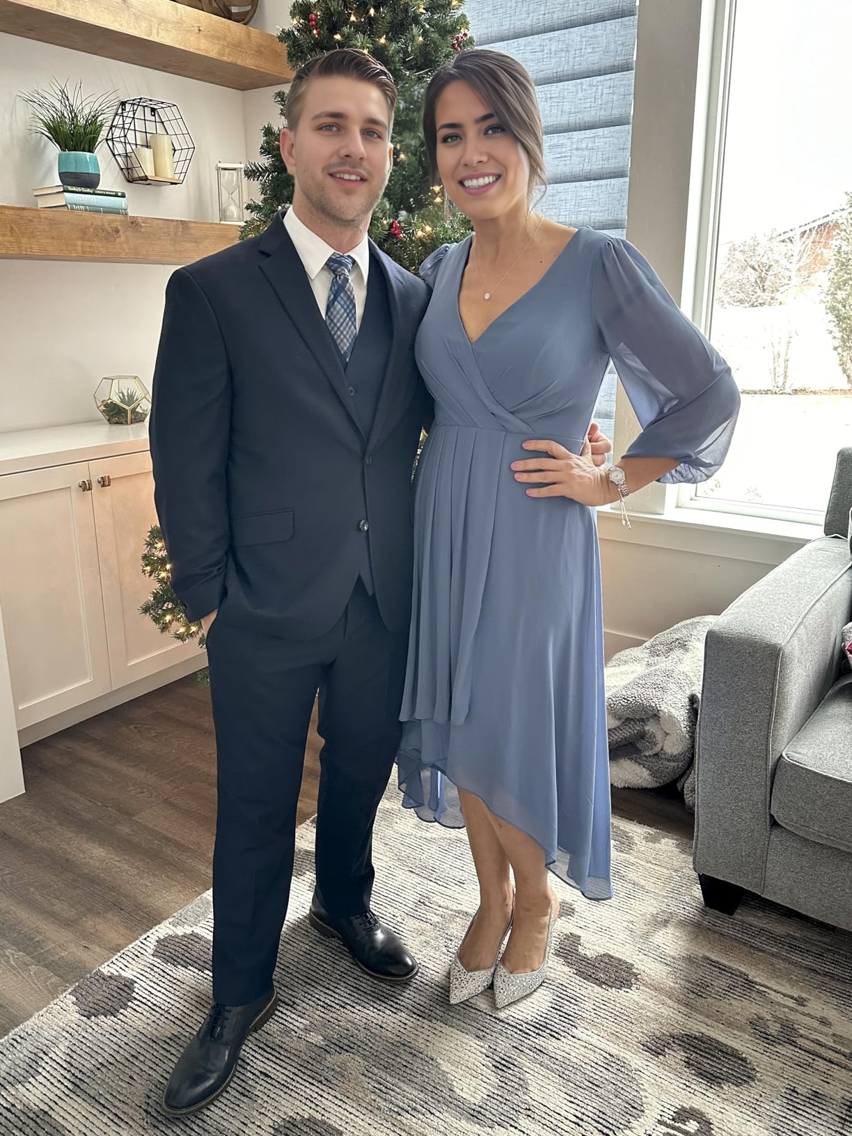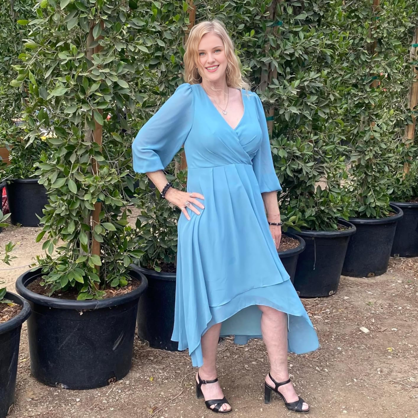 Abiti da sposa blu a trapezio, convertibili, abiti da mamma, formali, lunghezza tè, senza maniche, monospalla, in chiffon con arricciature