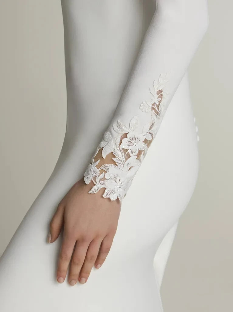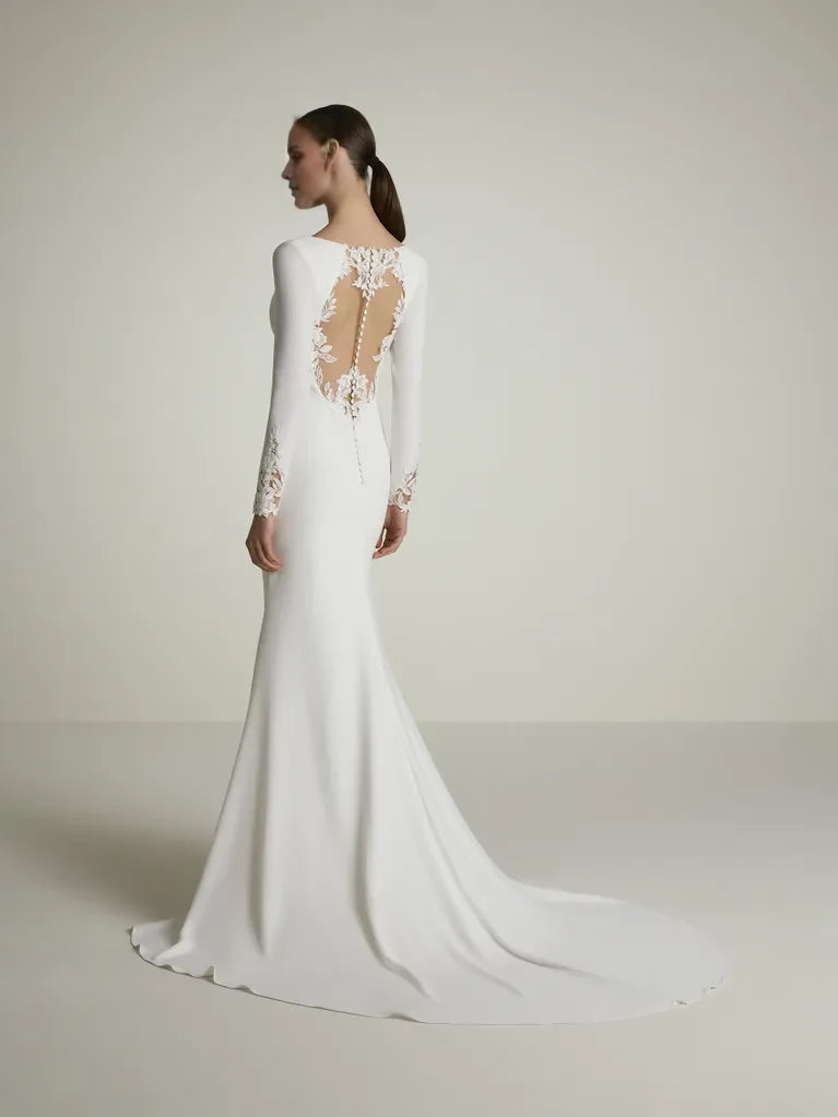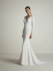 Elegant Mermaid Deep V-Neck Long Sleeve Lace-Back Maxi Winter Wedding Dress - US 2 / UK 6 / EU 32