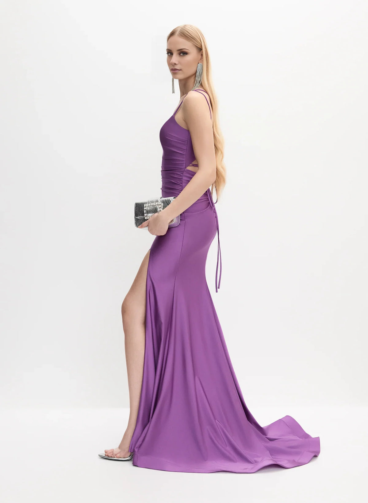 Refined Square Neck Spaghetti Strap Cross-Back Lace-Up Side-Slit Mermaid Floor-Length Evening Dress - US 2 / UK 6 / EU 32