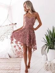 Abiti da cocktail a trapezio, eleganti, per invitati a nozze, per il ritorno a casa, asimmetrici, senza maniche, con spalline sottili, in tulle con applicazioni