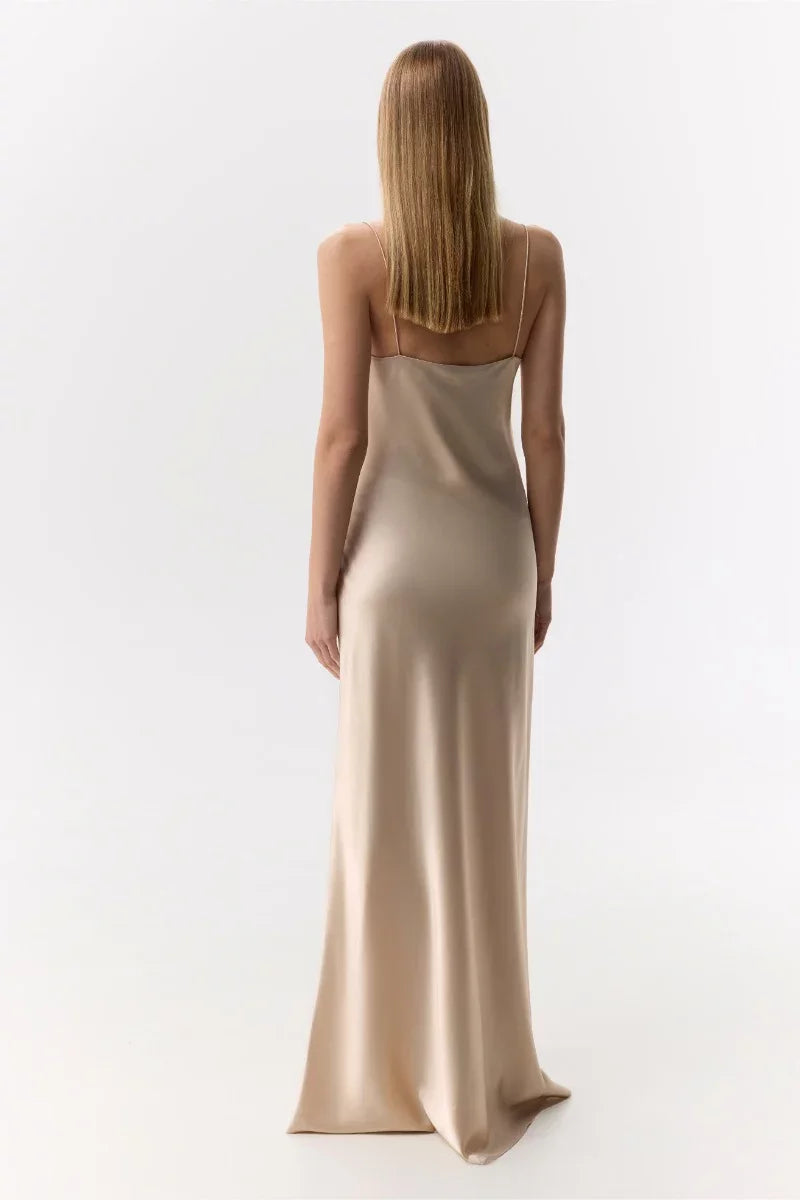Elegant-Simple Sheath Spaghetti-Strap Square-Neck Open-Back Floor-Length Evening Dress - US 2 / UK 6 / EU 32