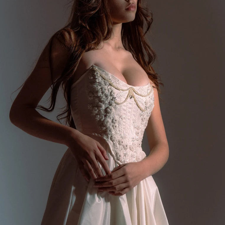 In termini di artigianalità, adottiamo un approccio puramente artigianale, partendo dai dettagli, proprio per rendere ogni abito un capolavoro artistico unico