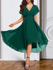 Abiti da cocktail a trapezio, abiti stile impero, abiti da festa, da invitata a nozze, lunghezza alla caviglia, maniche corte, scollo a V, in chiffon con spalline di colore puro, 2025 - Verde Nero / USA 2 / UK 6 / UE 32