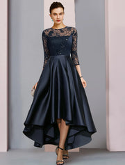 Abito da cerimonia per la madre della sposa, in stile vintage, con scollo a V, asimmetrico, in raso, pizzo, paillettes, mezza manica con pieghe