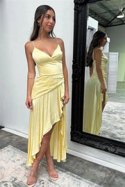 Elegant Prom Dress with V-Neckline, Ruched Bodice and Flowing High Low Hem - US 2 / UK 6 / EU 32